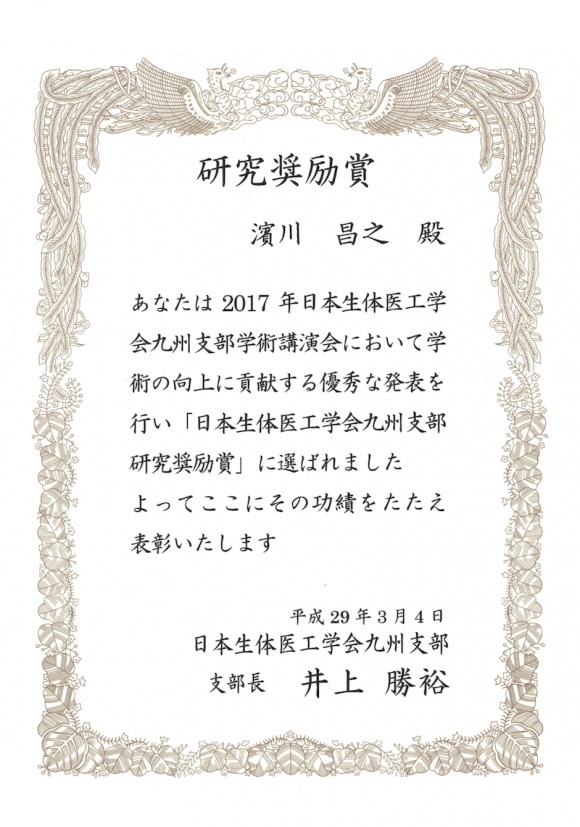 受賞名:日本生体医工学会九州支部研究奨励賞