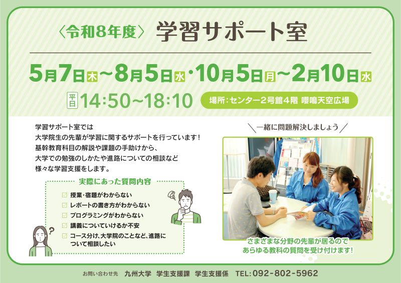 問い合わせ先:support-room★jimu.kyushu-u.ac.jp(★は@に置き換えてください。)