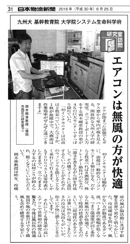 6月25日 岡本剛准教授が日本物流新聞の取材を受け、研究内容の紹介が同紙に掲載されました。