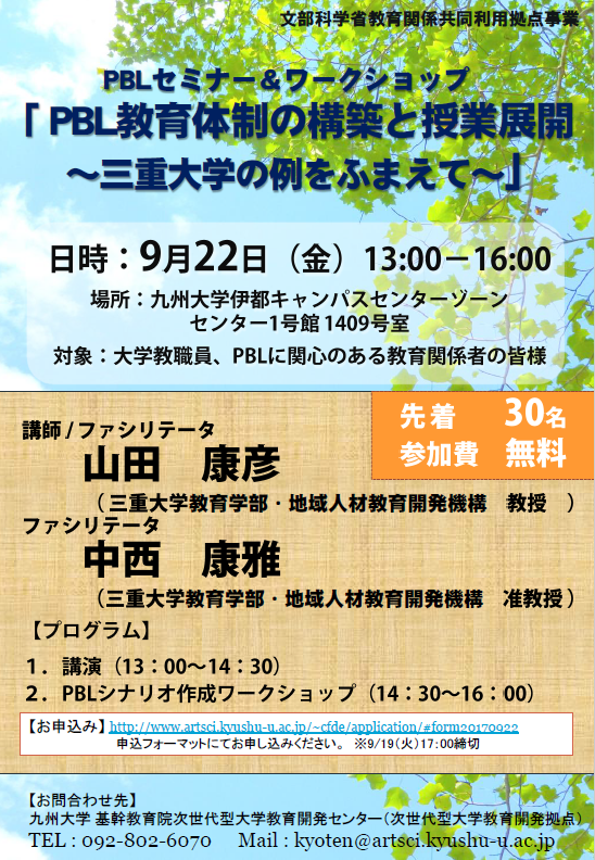 【対象】大学教職員、PBLに関心のある教育関係者等