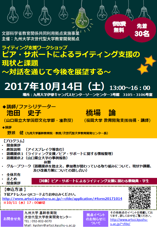 平成29年10月14日(土)にライティング支援ワークショップ「ピア・サポートによるライティング支援の現状と課題~対話を通じて今後を展望する~」を開催しました