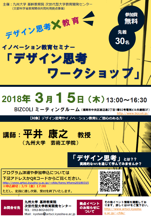 平成30年3月15日(木)イノベーション教育セミナー「デザイン思考ワークショップ」を開催しました。