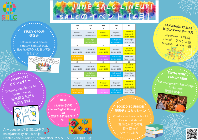 SALCは5月にたくさんのイベントを開催します。詳細については、下のポスターをチェックしてください。