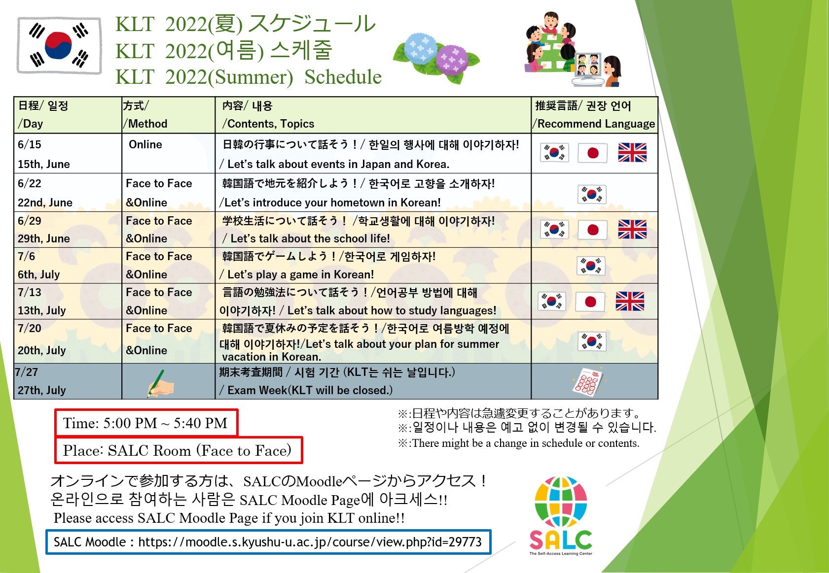 韓国語ランゲージ・テーブルのスケジュール(夏学期)