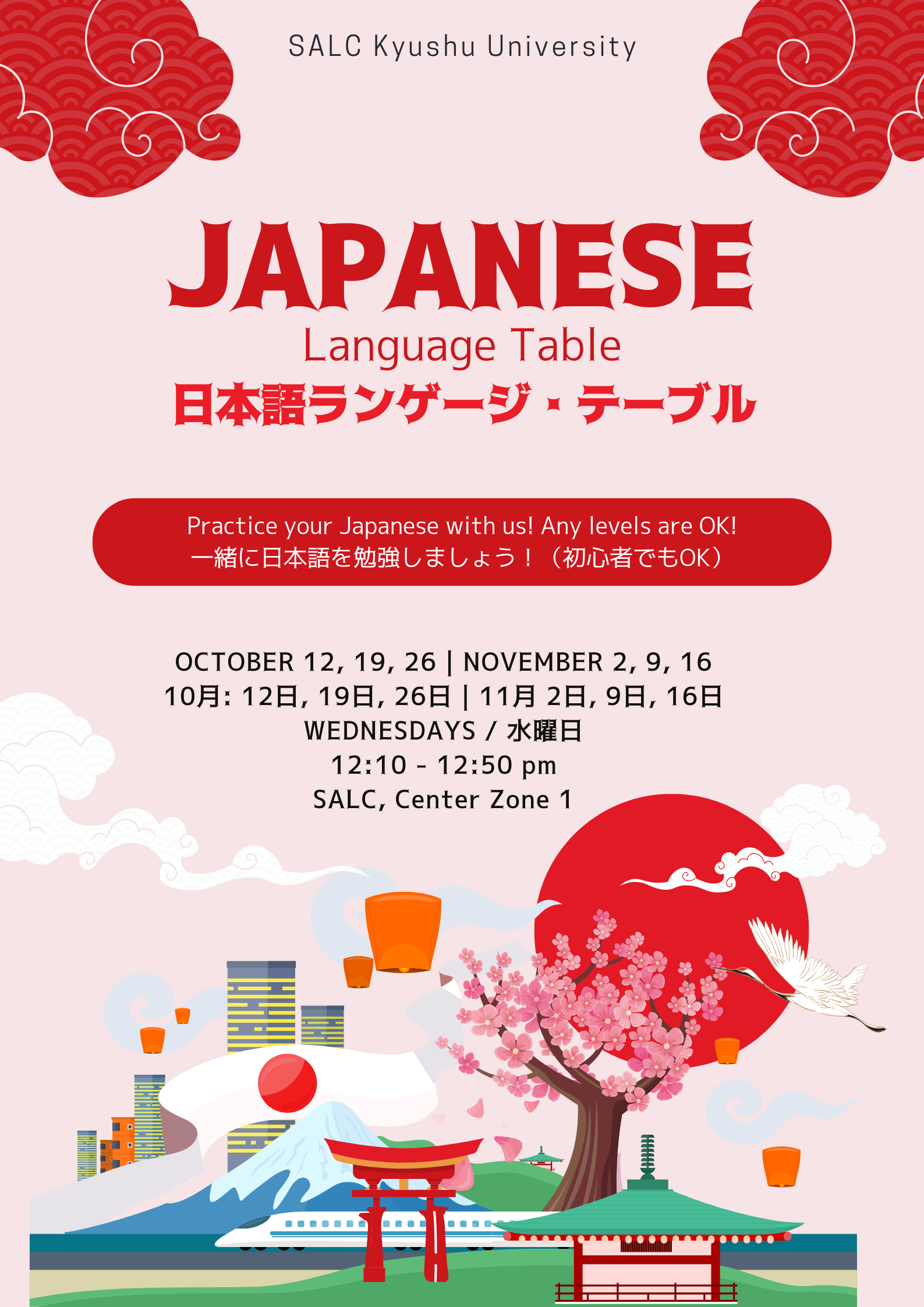 10月と11月は週1回日本語のランゲージテーブルを開催します。