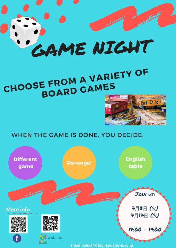 今月のゲームナイトの詳細については、下記のポスターをご覧ください。