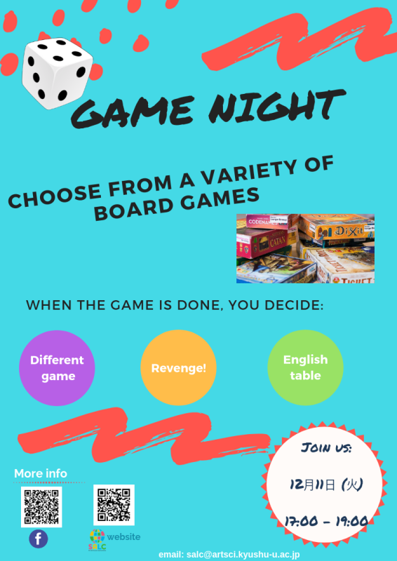 今月のゲームナイトの詳細については、下記のポスターをご覧ください。