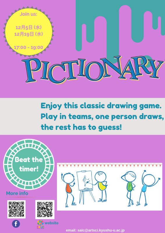 今月のPictionary (ピクショナリー)の詳細については、下記のポスターをご覧ください。