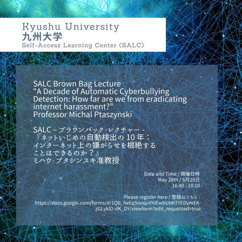 Please join if you are looking for a chance to practice your English listening skills! Date and Time: May 28th (16:40 – 18:10) Please register here: https://docs.google.com/forms/d/1Qb_fwEq5noquYhlEwbUbKTYEDymEK-zGLyklD-dK_DY/viewform?edit_requested=true