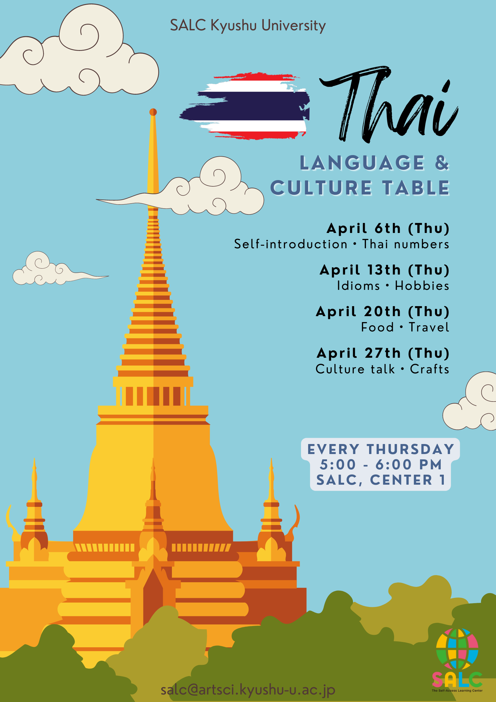 This April, SALC will host the Thai Language and Culture table once a week on Thursdays.