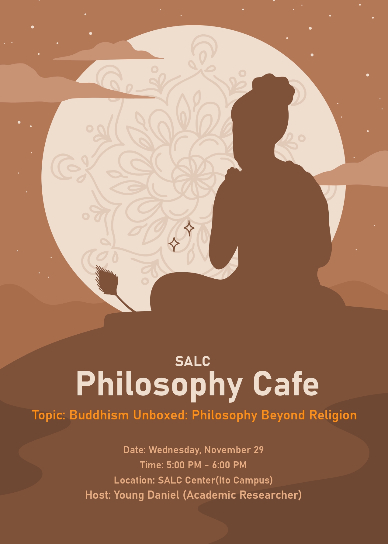 Join us at the SALC Philosophy Cafe for an enlightening exploration of “Buddhism Unboxed: Philosophy Beyond Religion”