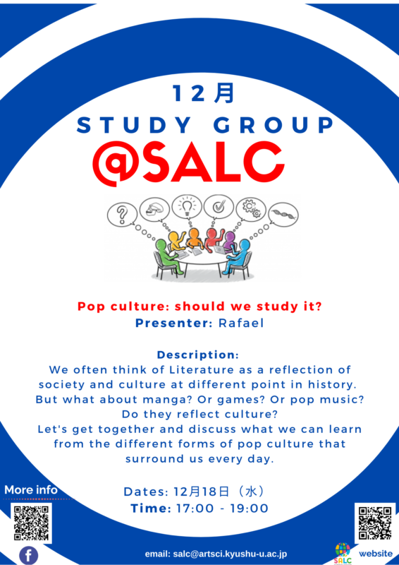 SALC teaching assistant and Kyushu University graduate student Rafael took charge of a study group called “Pop Culture: Should We Study It?”